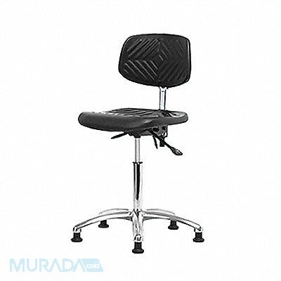 Polyurethane ESD Task Chair Weight Capacity 300 lb Material Polyurethane Seat Height Range 20-1/2 in to 28 in Color Black Seat Width 16 in Seat Depth 17 in Seat Tilt Backward 9 Degrees Seat Tilt Forward 10.5 Degrees Back Height 10 1/2 in Back Width 15 1/2 in Back Tilt Backward 13.5 Degrees Back Tilt Forward 10.5 Degrees Number of Casters 0 Number of Glides 5