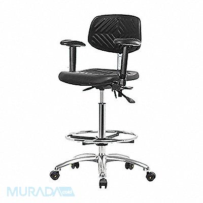 Polyurethane ESD Task Chair Weight Capacity 300 lb Material Polyurethane Seat Height Range 24-1/2 in to 34-3/4 in Color Black Seat Width 16 in Seat Depth 17 in Seat Tilt Forward 10.5 Degrees Back Height 10 1/2 in Back Width 15 1/2 in Back Tilt Backward 13.5 Degrees Back Tilt Forward 10.5 Degrees Number of Casters 0 Number of Glides 5