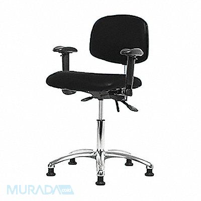 Vinyl ESD/Cleanroom Task Chair Weight Capacity 300 lb Material Vinyl (Antibacterial) Seat Height Range 19 in to 24 in Color Black Seat Width 19 in Seat Depth 18 in Seat Tilt Backward 9 Degrees Seat Tilt Forward 10.5 Degrees Back Height 11 1/2 in Back Width 16 1/2 in Back Tilt Backward 13.5 Degrees Back Tilt Forward 10.5 Degrees Number of Casters 0 Number of Glides 5