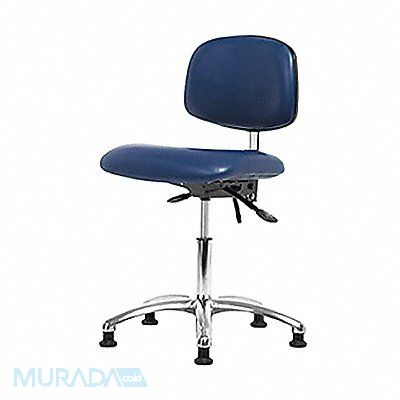 Vinyl ESD/Cleanroom Task Chair Weight Capacity 300 lb Material Vinyl (Antibacterial) Seat Height Range 19 in to 24 in Color Blue Seat Width 19 in Seat Depth 18 in Seat Tilt Backward 9 Degrees Seat Tilt Forward 10.5 Degrees Back Height 11 1/2 in Back Width 16 1/2 in Back Tilt Backward 13.5 Degrees Back Tilt Forward 10.5 Degrees Number of Casters 0 Number of Glides 5