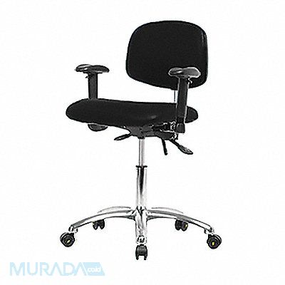 Vinyl ESD/Cleanroom Task Chair Weight Capacity 300 lb Material Vinyl (Antibacterial) Seat Height Range 19 in to 24 in Color Black Seat Width 19 in Seat Depth 18 in Seat Tilt Forward 10.5 Degrees Back Height 11 1/2 in Back Width 16 1/2 in Back Tilt Backward 13.5 Degrees Back Tilt Forward 10.5 Degrees Number of Casters 0 Number of Glides 5