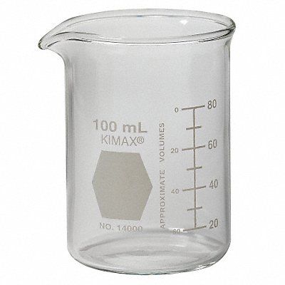Beaker 100 mL 3.38 oz Beaker Type Low Form Labware Basic Material Glass Labware Body Material Glass Graduation Subdivisions 10 mL Graduation Range 20 to 80 mL Reusable Non-Sterile 70 mm 2.8 in Autoclavable Yes Labware ASTM Specification E960-93 (2013) Labware USP Specification Type I Glassware Class A Labware Body Color Clear Transparent Package Quantity 48