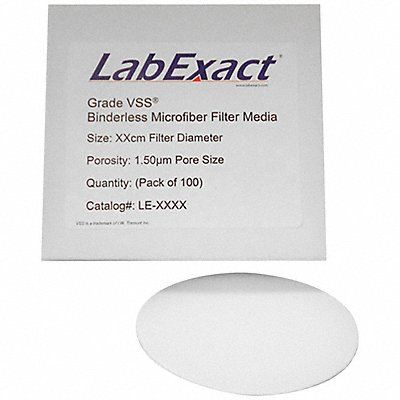 Glass Microfiber Filter Grade VSS Diameter 4.7 cm Material Binderless Borosilicate Glass Microfiber Thickness 0.43 mm Temp Range Up to 550 Degrees C For Use With Liquids or Air Pore Size 1.5 um Package Quantity 100