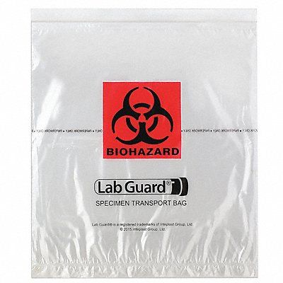 Specimen Transfer Bag Thickness 1.75 mil Material Low Density Polyethylene Color Clear Legend Biohazard Symbol Height 13 in Width 12 in Seal Zip Lock Strength Rating Not Rated Bags per Roll/Pack 100 Package Quantity 1000