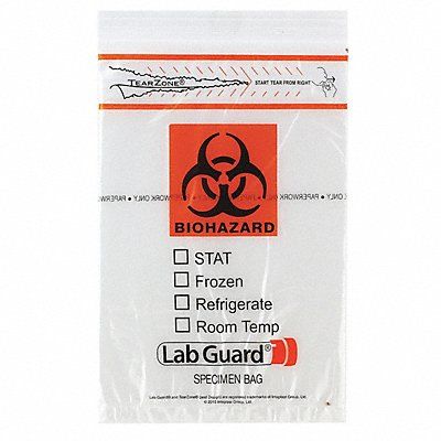 Specimen Transfer Bag Thickness 1.75 mil Material Low Density Polyethylene Color Clear Legend Biohazard Symbol Height 9 in Width 6 in Seal Zip Lock Strength Rating Not Rated Bags per Roll/Pack 100 Package Quantity 1000