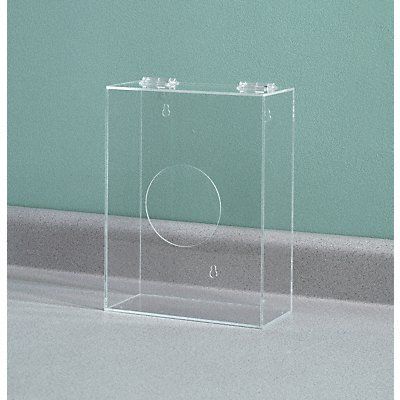 Apparel Dispenser Wall-Mountable Holds Beard Covers etc. Hairnets Number of Compartments 1 Height 11 3/10 in Width 8 1/2 in Depth 4 3/10 in Material Clear PETG Plastic Color Clear Includes Hinged Lid at Top