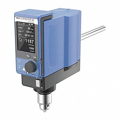 Eurostar 60 Control Volume 40 L Max Viscosity 50 000 cps Maximum Torque 60 Ncm Operating Speed 30 to 2000 rpm Mixing Speed Type Variable Voltage 230/115/100 Through Shaft Yes Overall Height 10.5 in Overall Length 9.1 in Overall Width 3.4 in Shaft Dia 16 mm