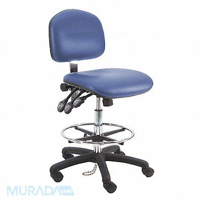 Ergonomic Chair Weight Capacity 450 lb Material Vinyl (Antibacterial) Seat Height Range 21 in to 31 in Color Blue Cushion Memory Foam Triple Layer Seat Width 19 in Seat Depth 17 in Seat Tilt Backward 10 Degrees Seat Tilt Forward -3 Degrees Back Height 13 1/2 in Back Width 17 in Base Reinforced Nylon Base Back Tilt Backward 80 Degrees Back Tilt Forward 105 Degrees For Workbench Ht. Yes Number of Casters 5 Number of Glides 0 Foot Support Y No Standards ANSI/BIFMA