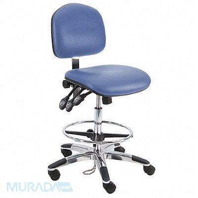 Ergonomic Chair Weight Capacity 450 lb Material Vinyl (Antibacterial) Seat Height Range 21 in to 31 in Color Blue Cushion Memory Foam Triple Layer Seat Width 19 in Seat Depth 17 in Seat Tilt Backward 10 Degrees Seat Tilt Forward -3 Degrees Back Height 13 1/2 in Back Width 17 in Base Polished Aluminum Back Tilt Backward 80 Degrees Back Tilt Forward 105 Degrees For Workbench Ht. Yes Number of Casters 5 Number of Glides 0 Foot Support Y No Standards ANSI/BIFMA