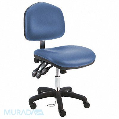 Ergonomic Chair Weight Capacity 450 lb Material Vinyl (Antibacterial) Seat Height Range 17 in to 22 in Color Blue Cushion Memory Foam Triple Layer Seat Width 21 1/2 in Seat Depth 19 in Seat Tilt Backward 10 Degrees Seat Tilt Forward -3 Degrees Back Height 15 1/2 in Back Width 19 in Base Reinforced Nylon Base Back Tilt Backward 80 Degrees Back Tilt Forward 105 Degrees For Workbench Ht. Yes Number of Casters 5 Number of Glides 0 Foot Support N No Standards ANSI/BIFMA