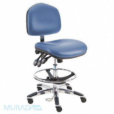 Ergonomic Chair Weight Capacity 450 lb Material Vinyl (Antibacterial) Seat Height Range 21 in to 31 in Color Blue Cushion Memory Foam Triple Layer Seat Width 21 1/2 in Seat Depth 19 in Seat Tilt Backward 10 Degrees Seat Tilt Forward -3 Degrees Back Height 15 1/2 in Back Width 19 in Base Polished Aluminum Back Tilt Backward 80 Degrees Back Tilt Forward 105 Degrees For Workbench Ht. Yes Number of Casters 5 Number of Glides 0 Foot Support Y No Standards ANSI/BIFMA