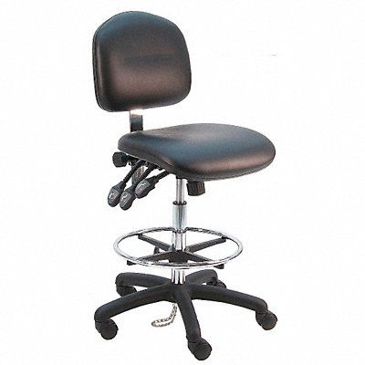 Ergonomic Chair Weight Capacity 450 lb Material Vinyl (Antibacterial) Seat Height Range 21 in to 31 in Color Black Cushion Memory Foam Triple Layer Seat Width 19 in Seat Depth 17 in Seat Tilt Backward 10 Degrees Seat Tilt Forward -3 Degrees Back Height 13 1/2 in Back Width 17 in Base Reinforced Nylon Base Back Tilt Backward 80 Degrees Back Tilt Forward 105 Degrees For Workbench Ht. Yes Number of Casters 5 Number of Glides 0 Foot Support Y No Standards ANSI/BIFMA