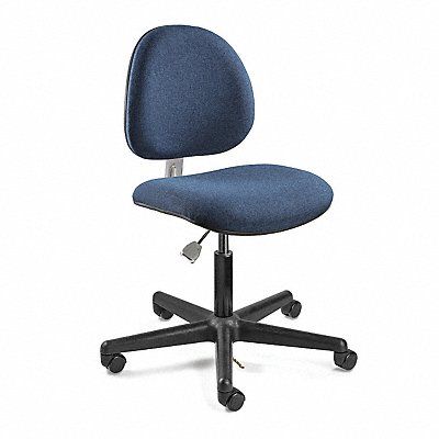 ESD Chair Weight Capacity 300 lb Material Fabric Seat Height Range 17 in to 22 in Color Navy Seat Width 18 in Seat Depth 18 in Back Height 15 in Back Width 16 in Base Five-Star Black Nylon For Workbench Ht. 26 in to 31 in Number of Casters 5 Number of Glides 0 Partially Assembled Standards ANSI/BIFMA