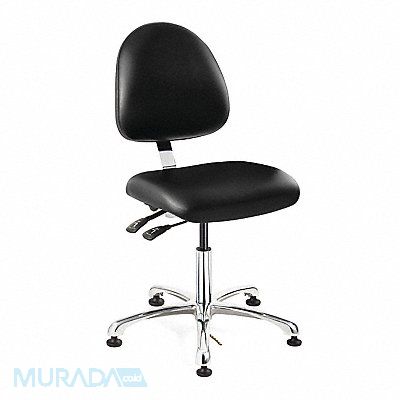 Ergonomic ESD Chair Weight Capacity 300 lb Material Vinyl (Antibacterial) Seat Height Range 17 in to 22 in Color Black Seat Width 20 in Seat Depth 18 in Base Five-Star Polished Aluminum Number of Casters 0 Number of Glides 5 Partially Assembled Standards Antibacterial standard AATCC TM147 Antifungal standard ASTM G21