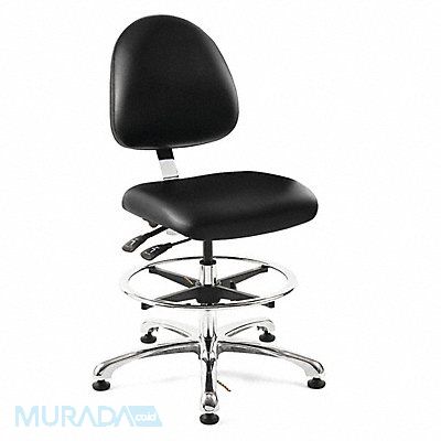 Ergonomic ESD Chair Weight Capacity 300 lb Material Vinyl (Antibacterial) Seat Height Range 22 in to 29-1/2 in Color Black Seat Width 20 in Seat Depth 18 in Base Five-Star Polished Aluminum Number of Casters 0 Number of Glides 5 Foot Support 20 in Adjustable Flat Chrome Footring Partially Assembled Standards Antibacterial standard AATCC TM147 Antifungal standard ASTM G21
