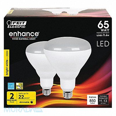 LED Bulb BR40 Bulb Shape Medium Screw (E26) Bulb Base Type LED 3000K 850 lm Wattage Equivalency 65W INC Watts 9.4 W 120 V AC Bulb Beam Angle 110 Degrees Dimmable Yes Bulb Designation BR40DM/930CA/2 Bulb Primary Application General Purpose Bulb Type Standard 4 3/8 in Bulb Dia 6 3/8 in Overall Length Rated Life 25 000 hr Indoor/Outdoor Usage Indoor Only Package Quantity 2
