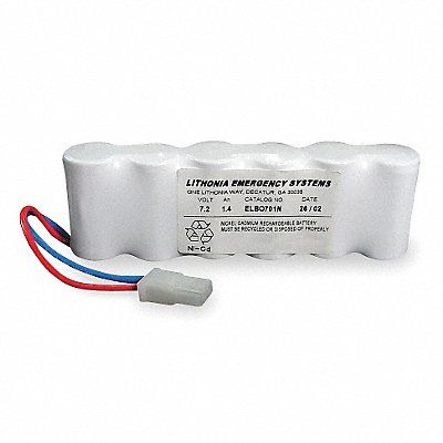 Battery Battery Chemistry Nickel Cadmium Battery Capacity 1.4 Ah Compatible with Series LV Recharge Time 168 hr Voltage 7.2 V AMP Terminal Type 60619-1 or 61117-1 Terminal Connection Rated Life 7 yr Black Housing Color Compatible Mfr Model Number LV S W R 120/277 ELN UM Includes Wire Harness Overall Depth 1 in Overall Height 2 in Overall Width 5 1/2 in