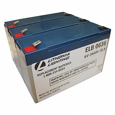 3 Cell Lead Acid Battery Battery Chemistry Sealed Lead Acid Battery Capacity 36 Ah Compatible with Series IND6100 Recharge Time 168 hr Voltage 6 V Slip On Terminal Type 250 and 187 Flag Terminal Connection Rated Life 4 yr Black Housing Color Compatible Grainger Part Number 7D817 Compatible Mfr Model Number IND6100 Overall Depth 8 3/4 in Overall Height 7 1/2 in Overall Width 6 3/4 in