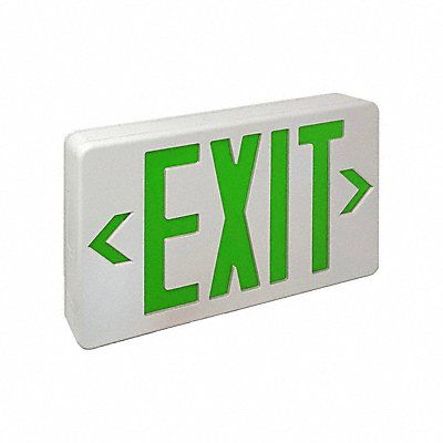 Exit Sign Letter Color Green Number of Faces 2 Directional Indicators - Emergency Lighting and Exit Signs Universal Field Selectable Chevrons Lighting Technology LED Housing Material - Emergency Lighting and Exit Signs Plastic Housing Color - Emergency Lighting and Exit Signs White Emergency Back Up Battery No Battery Chemistry Not Battery Powered Voltage - Emergency Lighting and Exit Signs 120/277 Number of Lamp Heads 0