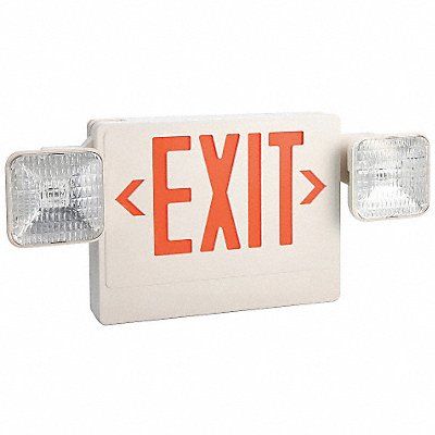 Exit Sign with Emergency Lights Letter Color Red Number of Faces 1 or 2 Directional Indicators - Emergency Lighting and Exit Signs Universal Field Selectable Chevrons Light Source- Emergency Lighting and Exit Signs Incandescent Housing Material - Emergency Lighting and Exit Signs Plastic Housing Color - Emergency Lighting and Exit Signs White Battery Chemistry Lead Calcium Voltage - Emergency Lighting and Exit Signs 120/277 Number of Lamp Heads 2