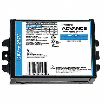 e-Vision(TM) Electronic HID Ballast Ballast Start Type Pulse ANSI Code C90/M90/M140/C191 Metal Halide Ballast Bulb Type Number of Bulbs Supported 1 Max Bulb Watts 100 W Input Voltage 120/277V AC Input Watts 109 to 110W -4 Degrees F Min Starting Temp Ballast Factor 1 Frequency 50/60Hz