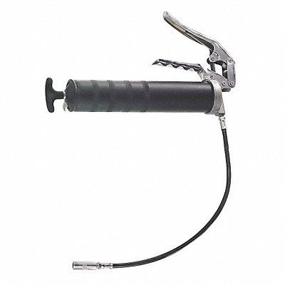 Grease Gun Grease Gun Loading Method Bulk Cartridge Grease Gun Handle Style Pistol Grip Nozzle Extension Type Flex Hose Strokes per oz 56 Max Operating Pressure 6 000 psi Cartridge Capacity 14 1/2 oz Bulk Capacity 16 oz Hose Length 18 in Black Tube Material Metal Tether Style Standard Tool (Accessory Needed for Tethering) Variable Stroke / Full Stroke Full Stroke Tool Length 15 1/2 in Includes Cast Pump Head Hose and Follower