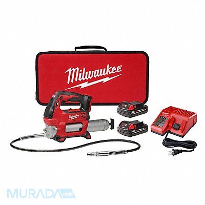 Cordless Grease Gun Battery Included 18 V Li-Ion Bulk Cartridge Suction Pistol Grip Nozzle Extension Type Flex Hose Strokes per oz 38 stroke/oz Max Operating Pressure 10 000 psi Cartridge Capacity 14 1/2 oz Bulk Capacity 16 oz Hose Length 48 in Tube Color Silver Volume per Minute 10 fl oz Tool Length 15 in Tool Weight 8.5 lb Battery Capacity 1.5 Ah Number of Speeds 2 Application Lubricating Moving Parts and Joints