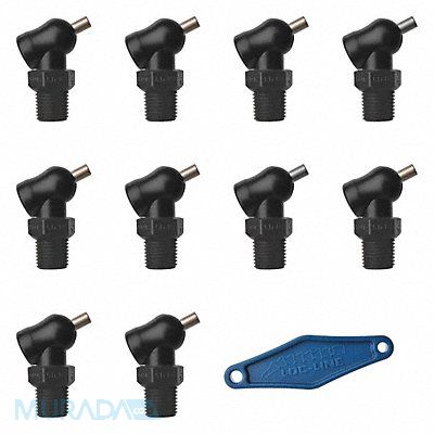 High Pressure Nozzle XR Style Hole Dia 0.086 in Thread Size 1/4 in Reach 0.25 in Acetal Stainless Steel Available In Black Swing 110 Degrees For Use With Lathes Mills Grinders and High Pressure Applications Up to 1000 psi Includes Adjustment Lever Max Pressure (PSI) 1 000 psi Package Quantity 10