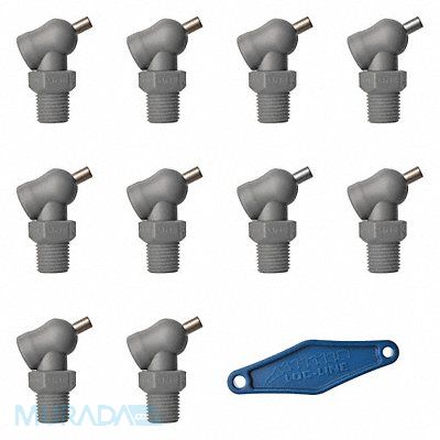 High Pressure Nozzle XR Style Hole Dia 0.086 in Thread Size 1/4 in Reach 0.25 in Acetal Stainless Steel Available In Gray Swing 110 Degrees For Use With Lathes Mills Grinders and High Pressure Applications Up to 1000 psi Includes Adjustment Lever Max Pressure (PSI) 1 000 psi Package Quantity 10
