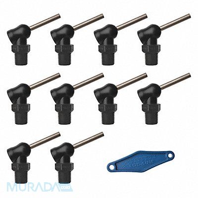 High Pressure Nozzle XR Style Hole Dia 0.086 in Thread Size 1/4 in Reach 1.25 in Acetal Stainless Steel Available In Black Swing 110 Degrees For Use With Lathes Mills Grinders and High Pressure Applications Up to 1000 psi Includes Adjustment Lever Max Pressure (PSI) 1 000 psi Package Quantity 10