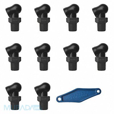 High Pressure Nozzle XR Style Hole Dia 0.117 in Thread Size 1/4 in Reach 0 in Acetal Stainless Steel Available In Black Swing 110 Degrees For Use With Lathes Mills Grinders and High Pressure Applications Up to 1000 psi Includes Adjustment Lever Max Pressure (PSI) 1 000 psi Package Quantity 10