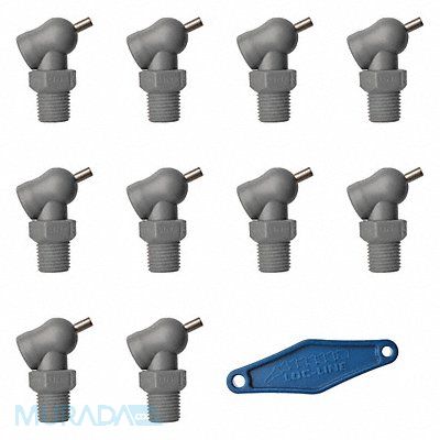 High Pressure Nozzle XR Style Hole Dia 0.117 in Thread Size 1/4 in Reach 0.25 in Acetal Stainless Steel Available In Gray Swing 110 Degrees For Use With Lathes Mills Grinders and High Pressure Applications Up to 1000 psi Includes Adjustment Lever Max Pressure (PSI) 1 000 psi Package Quantity 10