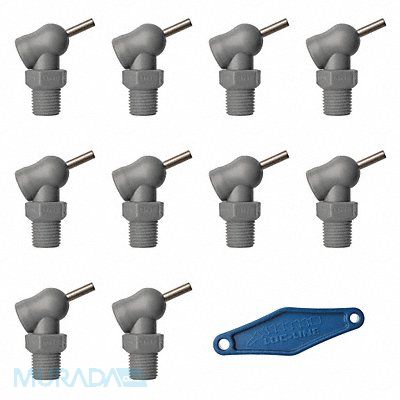 High Pressure Nozzle XR Style Hole Dia 0.117 in Thread Size 1/4 in Reach 0.5 in Acetal Stainless Steel Available In Gray Swing 110 Degrees For Use With Lathes Mills Grinders and High Pressure Applications Up to 1000 psi Includes Adjustment Lever Max Pressure (PSI) 1 000 psi Package Quantity 10