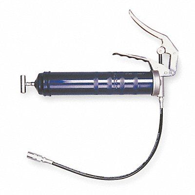 Grease Gun Grease Gun Loading Method Bulk Cartridge Grease Gun Handle Style Pistol Grip Nozzle Extension Type Flex Hose Strokes per oz 35 Max Operating Pressure 6 000 psi Cartridge Capacity 14 1/2 oz Bulk Capacity 16 oz Hose Length 18 in Blue Tube Material Steel Tether Style Standard Tool (Accessory Needed for Tethering) Variable Stroke / Full Stroke Full Stroke Tool Length 15 3/8 in Includes Head