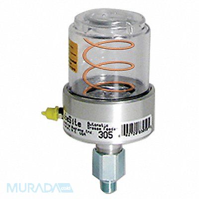 Grease Feeder Polycarbonate Capacity (Oz.) 2 fl oz Dia (In.) 2 3/8 in Height (In.) 4 5/8 in 1/8 in Male NPT Operating Temp (F) -10 to 250 Spring Tension (PSI) 1 to 2 For Dynamic and Vibrating Conditions Includes Extra Light and Heavy Springs Metal Base