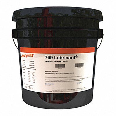 General Purpose Lubricant Wet Jet-Lube 769 Net Fill 7 lb Container Size 1 gal Lubricant Container Pail Mineral Oil No Additives Primary Additive Min Operating Temp -25 Degrees F Max Operating Temp 300 Degrees F NSF Rating H2 No Food Contact 50 State VOC Compliant Yes VOC Content 3.6 Percent Lubricant Color Yellow Odorless Yes Non-Flammable Flammability Non-Flammable Flash Point Greater Than 167 Degrees F Standards NSF Registered #137551 (Bulk) #137644 (Aerosol)