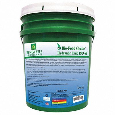 Hydraulic Oil ISO Viscosity Grade 68 SAE Grade Not Specified Base Oil Vegetable Oil Container Size 5 gal NSF Rating H2 No Food Contact Min Operating Temp 0 Degrees F Max Operating Temp 250 Degrees F Viscosity Index 194 Flash Point 500 Degrees F Pour Point -25.6 Degrees F Container Style Pail Color Light Yellow Timken OK Load Not Specified