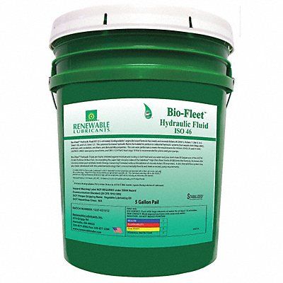 Hydraulic Oil ISO Viscosity Grade 46 SAE Grade Not Specified Base Oil Vegetable Oil Container Size 5 gal NSF Rating Not Rated Min Operating Temp -15 Degrees F Max Operating Temp 250 Degrees F Viscosity Index 190 Flash Point 464 Degrees F Pour Point -27 Degrees C Container Style Pail Color Yellow Timken OK Load Not Specified