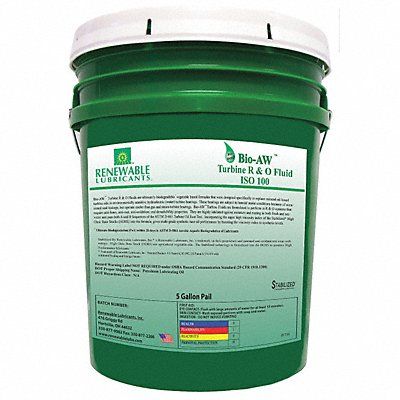 R O Oil ISO Viscosity Grade 100 SAE Grade Not Specified Base Oil Vegetable Oil Container Size 5 gal NSF Rating Not Rated Min Operating Temp -22 Degrees F Max Operating Temp 250 Degrees F Viscosity Index 196 Flash Point 536 Degrees F Pour Point -22 Degrees F Container Style Pail Color Light Yellow Timken OK Load Not Specified Standards A-A-59354 ASTM D-5864 ASTM D-665 A and B EAL ISO 15380 MIL-H-46001D VGP