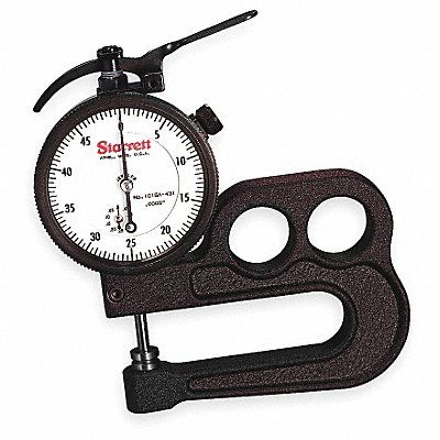 Dial Thickness Gauge Range 0 in to 0.5 in Graduations 0.0005 in Accuracy +/-0.001 in Long Form Calibration Certificate No Actuation Type Lever Anvil Shape Flat Contact Material Steel Dial Reading 0-50 Dimension Type Inch Maximum Measurement - Inch 0.5 in Minimum Measurement - Inch 0.0005 in Minimum Measurement - mm 0 mm Operation Type Mechanical Throat Depth 2 1/2 in Anvil Diameter 0.25 in Case Type Case Construction Cast Frame Dial Size 2 19/64 in Grip Style One Handed
