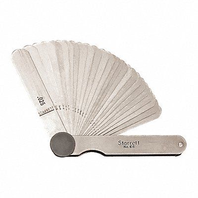 Feeler Gauge Set Finish Unfinished Blade Length 3 1/32 in Blade Material Steel Blade Style Short Blade Dimension Type Inch Included Certification No Maximum Thickness - Inch 0.025 in Minimum Thickness - Inch 0.0015 in Non-Marring No Number of Feeler Blades 26 Thickness Range 0.0015 in to 0.025 in Tolerance +/-0.00025 in