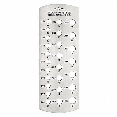 Drill Bit Gauge Material Steel Finish Satin Chrome Dimension Type Fractional Inch For Use With For Fractional Inch Drill Bits Maximum Size - Inch 0.40625 in Maximum Size - Wire 2/0 AWG Minimum Size - Inch 0.234375 in Minimum Size - Wire 3 AWG Number of Holes 26 Length 6 1/4 in Range 2/0 AWG to 3 AWG Thickness 5/64 in Width 2 5/16 in
