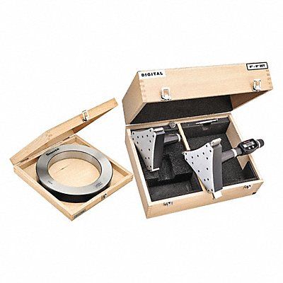 Digital 2-Point Inside Micrometer Kit Range 150 mm to 200 mm 6 in to 8 in Resolution 0.00005 in 0.001 mm IP Rating IP65 SPC Output Yes Data Output Type Cable Wireless with Transmitter Movement of Screw 1 in Coolant Resistant Yes Inside Micrometer Type 3-Point Inside Micrometer Number of Measuring Rods 0 Number of Micrometers 1 Operation Type Digital Thimble Type Ratchet Stop Case Included Yes Case Type Wood Case Contact Point Material Carbide Display Type LCD