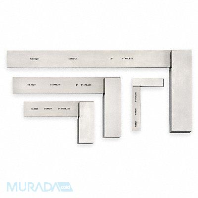 Precision Steel Square Material Stainless Steel Angle 90 Degrees Number of Pieces 4 Outside Dimensions 2 31/32 in x 1 31/32 in 3 31/32 in x 2 31/32 in 5 29/32 in x 3 29/32 in 12 1/32 in x 6 7/8 in Case Included Yes Case Type Plastic Construction Stainless Steel Squareness - Inch 0.001 in With Wide Base No