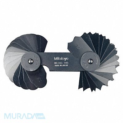 Radius Gauge Set Range 7.5 mm to 15 mm by 5 mm Accuracy +/-0.002 in Configuration Concave Convex Radii Dimension Type Angle Included Sizes 0.5 mm (7.5 mm - 15 mm) Increments 0.5 mm (7.5 mm to 15 mm) Maximum Measurement - mm 15 mm Minimum Measurement - mm 7.5 mm Number of Leaves 32 Set Style Fixed Leaves With Handle Case Included Yes Case Type Hard Case Finish Uncoated Includes Locking Clamp