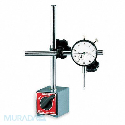 Mitutoyo Dial Indicator Range 1 in Range per Revolution 0.100 in Dial Reading 0-100 Magnetic Stand Can be Attached on a Flat Surface Perpendicularly or Horizontally or on Cylindrical Surface Finish Fully Chrome Plated Includes Dial Indicator and Magnetic Base with On/Off Switch