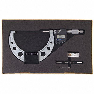 IP65 Digital Outside Micrometer Range 101.6 to 127 mm 4 in to 5 in Resolution 0.00005 in/0.001 mm Accuracy +/-0.0001 in IP Rating IP65 SPC Output Yes Data Output Type Cable Long Form Calibration Certificate No Coolant Resistant Yes Dimension Type Inch/Metric Included Certification Certificate of Inspection Operation Type Digital Thimble Type Ratchet Anvil Material Carbide Anvil Shape Flat Battery Size SR44 Case Included Yes Case Type Plastic