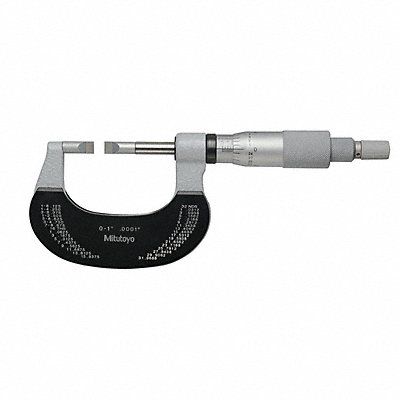 Mechanical Blade Micrometer Range 0 in to 1 in Resolution 0.0001 in Accuracy +/-0.00015 in SPC Output No Long Form Calibration Certificate No Anvil Shape Blade Dimension Type Inch Operation Type Mechanical Thimble Type Ratchet Anvil Material Carbide Tipped Case Included Yes Features Keyways Measuring the Groove Diameter of Shafts Includes Box Key Setting Standard (From 25 mm Upward) Maximum Measurement - Inch 1 in Minimum Measurement - Inch 0 in Rotating Spindle (Yes/No) No