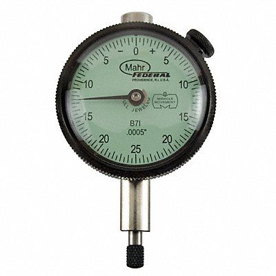 Dial Indicator - Lug Back Range 0 in to 0.125 in Graduations 0.0005 in Accuracy +/-0.0005 in Long Form Calibration Certificate No AGD Number AGD 1 Back Type Lug Dial Color Green Dial Reading 0-25-0 Dial Size 1.75 in Dimension Type Inch Maximum Measurement - Inch 0.125 in Minimum Measurement - Inch 0 in Number of Indicators 1 Operation Type Plunger Range per Revolution 0.05 in Reading Balanced Bearing Type Jeweled Bezel Lock Yes Contact Point Dia 0.25 in