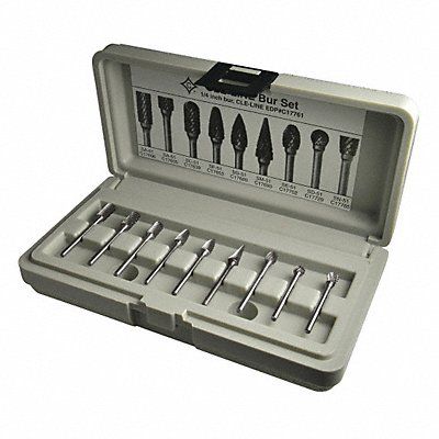 Carbide Bur Set Single Cut Shank Dia 1/8 in Number of Pieces 9 Trade Number SA-51 SA-51-2 SC-51 SD-51 SE-51 SF-51 SG-51 SM-51 SN-51 Coating Bright (Uncoated) Head Dia 1/4 in